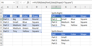 = INDEX( Data[[Size]:[Shape]], XMATCH(filtered#,Data[Part]), {1,2,3} )XLOOKUP can be made to work but you would need to be desperate or extraordinarily masochistic to attempt it!