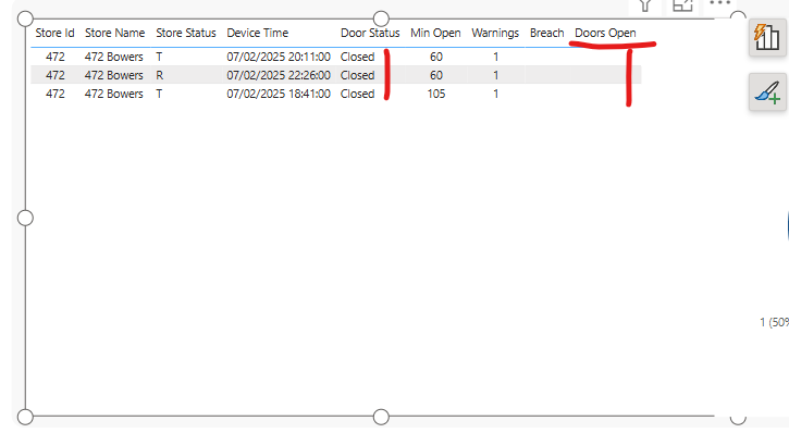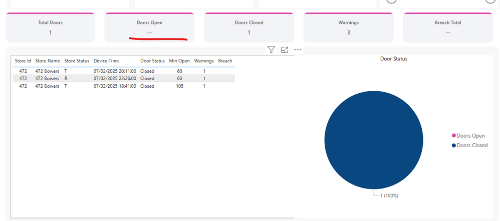 VAR _count = CALCULATE ( MAX ( BMSDoorStoreJoin[CreatedOn] )//, //BMSDoorStoreJoin[Status] = "Open" )measure returns nil.