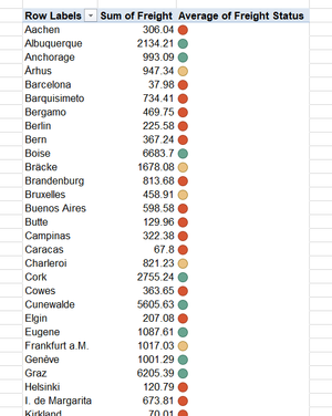 - Create PT, put City Name & Color in Row, and Sum Of Freight as Value.