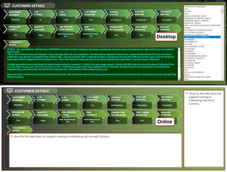 I am looking for a solution to allow this Dashboard to work on Excel Online I am thinking that I can use a Data Validation for the List and but exactly sure how I can show the Cell with multi line te...
