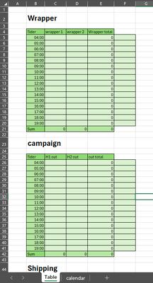 Hi, I have 3 tabels where i need the total sum of them to be put in a calender. I would like it to be automatic but I don't know how. I already have the total sum of the tabels. But now I ne...