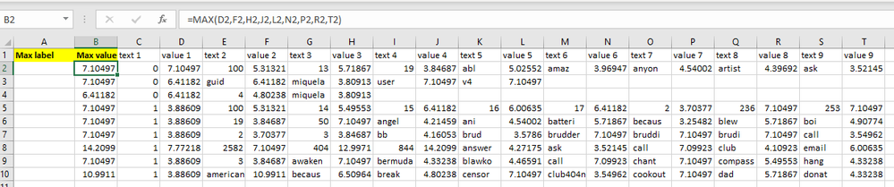 The text number actually goes up to 124 (instead of just 9). A more efficient way to return the max value would be highly appreciated as well! Now what I can think of is only to click e.g., D2, F2 H2 etc. one by one... Thanks a lot!