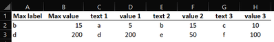 I am trying to look up the text with the highest value in each row. The data currently is orgnaised in this way (attached a screenshot). I am able to get the max value in each row, but I could not figure out how to get its corresponding text. For example, A2 should be "0" (text 1) and A3 should be "user" (text 4).