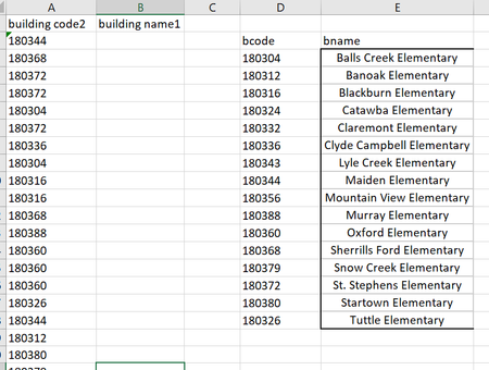 name, XLOOKUP(buildingCode2, bcode, bname, "<unknown>"),