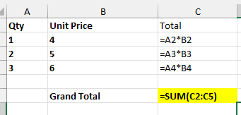 =SUMPRODUCT(A2:A4,B2:B4)You can apply this formula.