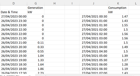 Hi, Apologies I know there is lots of videos online but I can't get my head around this. I am looking I think for a look up function for generation (column G) for the date and time exactly ...