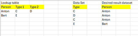 =INDEX($A:$A, SUM(($B$2:$C$4=E2)*ROW($B$2:$C$4)))