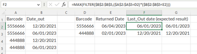 =MAXIFS(Date_out_column,Barcode_column,Barcode,Date_out_column,"<"&Returned_date)