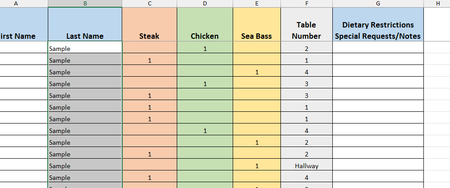 Marketing insists on giving me her spreadsheet like this. Currently I just have to sort out each column and print separately. The problem then becomes her wanting "couples" to stay together. So I can...