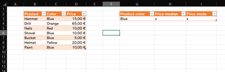 Hi Can anyone tell me how to find the median and the mode of values with criteria? Here is an example of what I mean: On the left is a list of products, their colors and prices. On the ta...