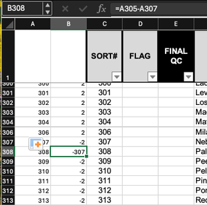 I noticed that my EXCEL worksheet is missing Row 305, and nothing I tried will bring it back. So I devised a formula to see what this is about, in the form =A305-A307 for each cell in 475 rows of my...