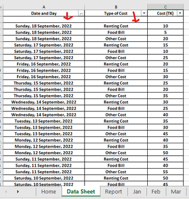 =SUMPRODUCT((Data_Sheet[Date and Day]>$C2-WEEKDAY($C2,16))*(Notice_Board[[#Headers],[Renting Cost]]=Data_Sheet[Type of Cost])*Data_Sheet[Cost (TK)])=SUMPRODUCT((Data_Sheet[Date and Day]>$C2-DAY($C2))*(Notice_Board[[#Headers],[Renting Cost]]=Data_Sheet[Type of Cost])*Data_Sheet[Cost (TK)])