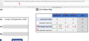 =SUMPRODUCT((Data_Sheet[Date and Day]>$C2-WEEKDAY($C2,16))*(Notice_Board[[#Headers],[Renting Cost]]=Data_Sheet[Type of Cost])*Data_Sheet[Cost (TK)])=SUMPRODUCT((Data_Sheet[Date and Day]>$C2-DAY($C2))*(Notice_Board[[#Headers],[Renting Cost]]=Data_Sheet[Type of Cost])*Data_Sheet[Cost (TK)])