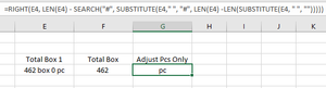 Hi Everyone! Here I want to get the first value and the last value look like I have (462 box 0 pcs) in a cell and I want to get the first value 462 which give me the count of box and then need the v...