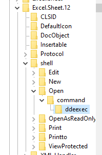 - b) below that there as no ddeexec key, so I added a new key called ddeexec there, see screenshot, and gave it the value