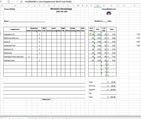 I have a workbook utilizing VLookup that the results display correctly i.e., 0.53 is the correct answer in the amount column. I want to multiply that against 14 (number of supplement pills). My formu...