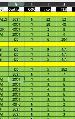 Apologies for not being more specific. My spreadsheet looks like this: