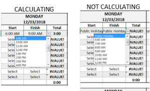 I am trying to make a staff roster and have a drop down menu that has time values and word values that can be selected. The cell that the menu exists in, is part of a formula, calculating total hours...
