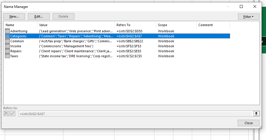 Note that this set of tables is the only content of the workbook, There are no cells anywhere, and never have been, which reference the Category label.