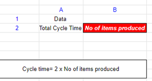 Hello Guys, I need excel formula for my below problem. Here, Step involved: I need "Total Cycle Time". 1) When we click the cell "No of items produced", it will ask me to enter Quantity ...