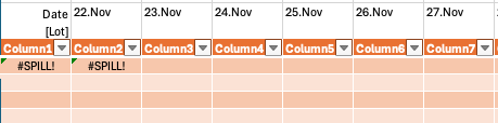If I exclude the calculated headings, I get #SPILL errors