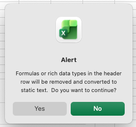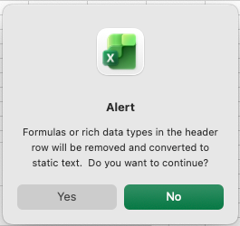 I've read posts that talk about formatting your data as a table. Bit if I try and format by "helper" data as a table, I get the following warning: