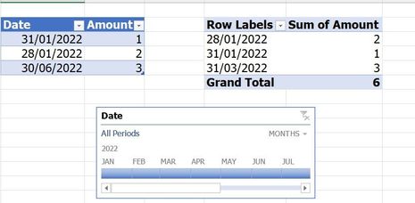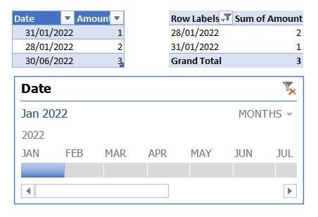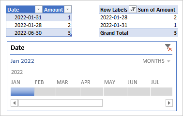 As show below, pivot table didn't show data in Jan 2022 as I chosen. Also the month of June I chosen, the data didn't show.