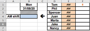 This could be made more nuanced, I suspect. That doesn't seem to be a complete roster, for example. Are there not more individuals on that AM shift? What about the PM shift? Are you just picking people off randomly, or will there be a patter to the assignments? What does it even mean when you say, "And of course if two names are added, it should cancel it out." What is the first "it," the one that does the canceling; and then what is the second "it" that gets canceled?