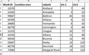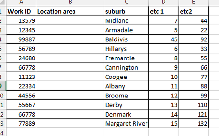 Hi I have a list (File B) where I want to fill in the location area in a column right next to the suburb, depending on the suburb. Means there are several suburbs with the same location area. The r...
