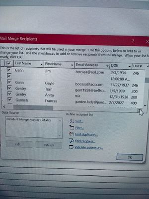 Is it possible for you to post a copy of the spreadsheets (except without real names and addresses)? Either here--or if that doesn't work in Google or OneDrive?