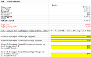 Hello im trying to use a formula for figuring out if a bonus will be paid if sales or the operating profit target is met, its wanting a nested if with or function in it, im struggling as im new to th...