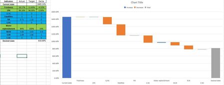 5. Now when you change the value of the "rngWaterFallMin" cell the value will automatically update the chart. Changing it to make the bars appear larger or smaller based on your new specified minimum value.