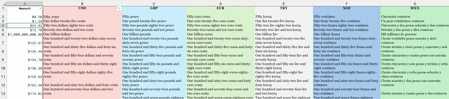 - layout is different, we have both "few dollars AND some cents", or "few dollars some cents" (without and)