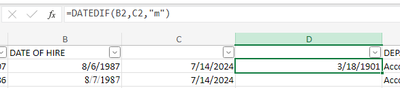 SergeiBaklan Thank you for your download. It was very helpful in troubleshooting a similar issue I had. My error was #NUM!. Your formula worked, so I Googled #NUM error and found out that the dates have to be in (earlier date, later date) order. Fortunately, all my dates are progressive, but curious if =DATEDIF function can work if dates increase and decrease (resulting in a negative number of months). Again, thank you.
