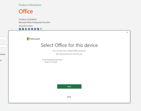 Office 365 pro licence conflict with 2016 professional plus