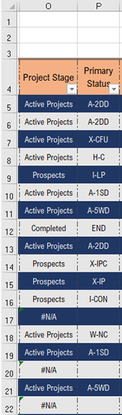 I have a master list of all the projects we are working on at work, and I would like one cell to change based on my input in another cell. I manually change the “Primary Status” in Column P using dat...