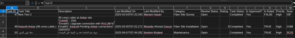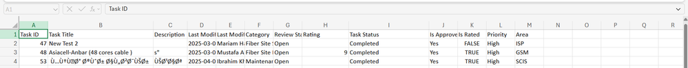 I am trying to open a csv file, that contains Arabic characters. In most cases, it will render the Arabic Character as unreadable characters (as shown in the image below). Those scenarios, include opening the file by double clicking, saving it again as CSV with UTF-8, or converting it to XLSX, all of which result in the same thing as the first image.