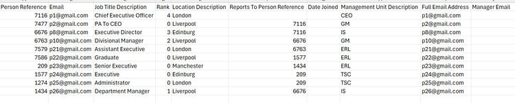 Currently If an executive reports to a Senior Executive (Rank 0), the formula checks the 4th column. If the Senior Executive has a Rank 0, it looks at the 6th column instead (to get the employee number the Senior Executive reports to).