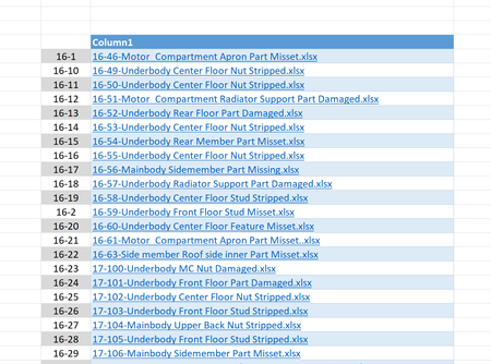 =IFERROR(INDEX($D$1:$D$20,MATCH(ROW(B1),$E$1:$E$20,0)),"")This formula is in cell F1 and returns the link for number 16-1.