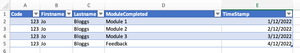 I have been puzzling over the following. Have a table that looks a bit like this: What I want to do is populate. second worksheet and record Module 1, 2, and 3 completions, by entering a '1'...