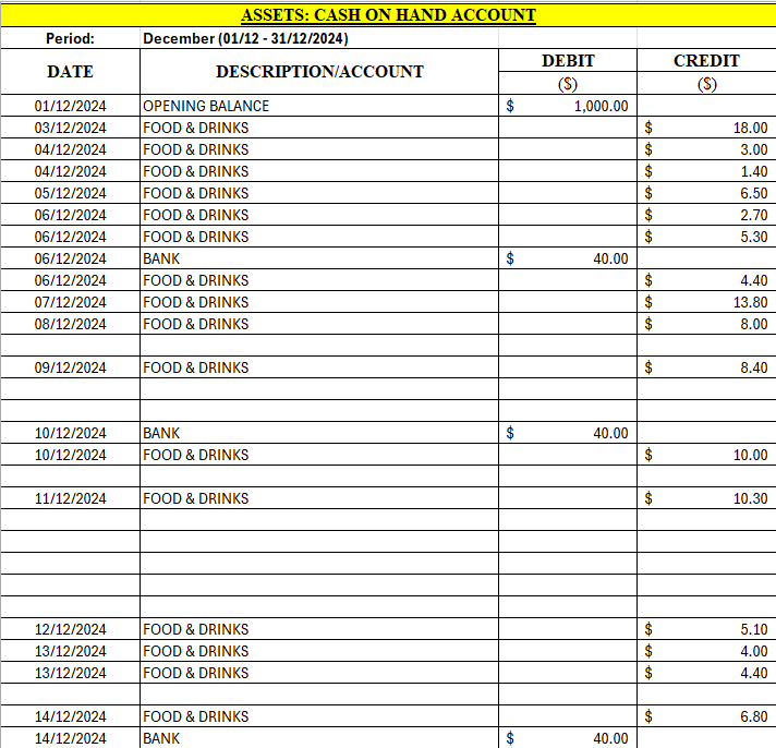 The below shows the sample of Cash on Hand Account.