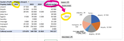 I have created the pie chart. It automatically shows only the first year of 2022 (column) of the pivot chart.