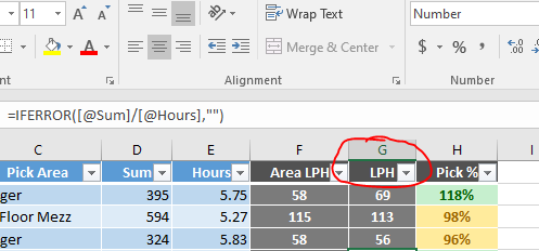 Can someone point me in the direction to resolve this? I need the value field to match the numbers in the LPH column but it's defaulting to a "1" in the pivot table. Would a formula that its driven from be affecting it?