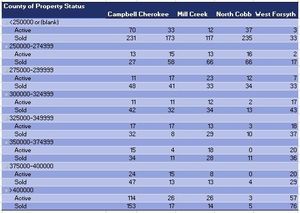I'm having trouble with my pivot table & chart. Basically, I have tons of housing data where each entry (Each house) has an assigned county, high school, price, and status (either "Sold" or "Active...