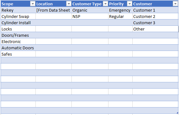 I have a *I believe* a pivot table question. I'm looking to create a table that generates a cost when answering five questions. Each question would have to be linked to a data sheet that has the data to pull from. My question is: When generating this program in excel, which formulas would I have to use to do that, and how would I use them? Please refer to the options below. I'd like it to be a table that I can select options from or type in a response and it associates the response to the data on the additional data sheets.