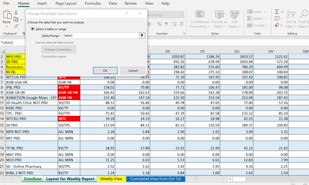 Hello there, i'm trying to add columns to a data source for a pivot table. I cannot do that, don't know why. As you can see in the attached picture, the cell range consider (for some reason) till...