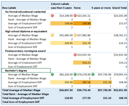 Looking to understand how to format a pivot table like in the screenshot below. Not sure on how to create the sub headings underneath the main headers ("Average of Median Wage," "Average of Employmen...