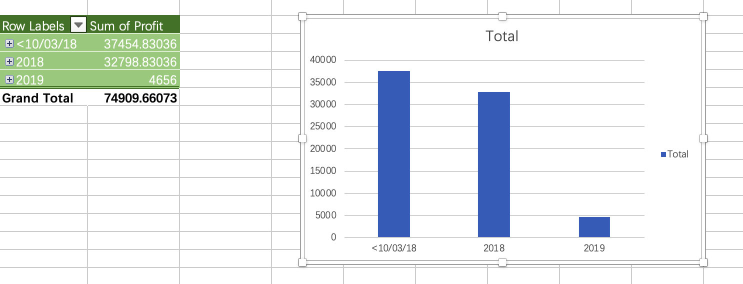 I have a spreadsheet which has data after a date 10/3/18. However, when I created a pivot table, it created a new group for the dates before 10/3/18 and even generated the total for the sales before that date, which don't exist at all!