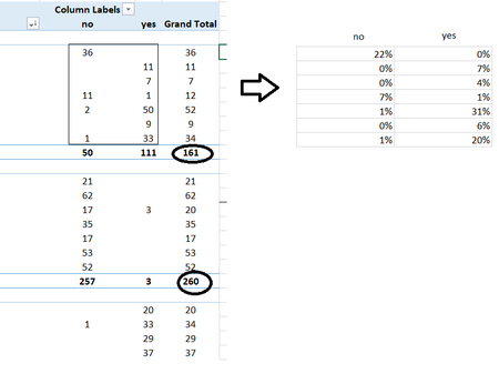 Unfortunately, % of Parent Row Total it gets the value and divided by the total number in the same column. like in my example: 36 / 50