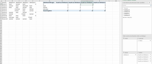 Hello together, I have the following question about pivot-tabulars: I have four Attributes (A, B, C and D) and five answers (Very hard, hard, normal, easy, very easy). I want to show the numbers of...
